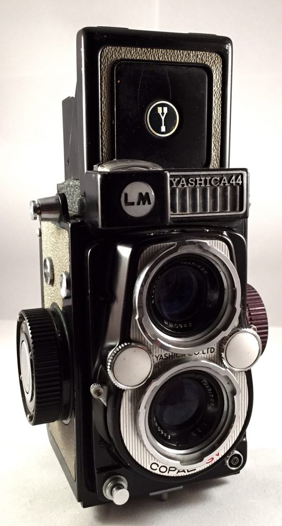 Introduced in 1958, the Yashica 635 TLR is special in that it can use either 120 format film or 35mm with an adapter kit. It is very similar to the Yashika D with the exception of additional controls for 35mm film usage. The viewing lens is almost as bright and clear as any I have seen.