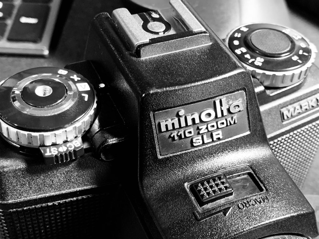 This is the Minolta Weathermatic Dual from the late 1980’s, a waterproof 35mm autofocus camera in stylish yellow and black colors. It has a dual lens system (f3.5 35mm, f5.6 50mm) activated with a button on top of the camera. There is also an underwater macro mode turned on with a button on the back of the body. The Weathermatic Dual uses an infrared autofocus system, which I found to be spotty particularly when reflective surfaces such as glass were involved.
