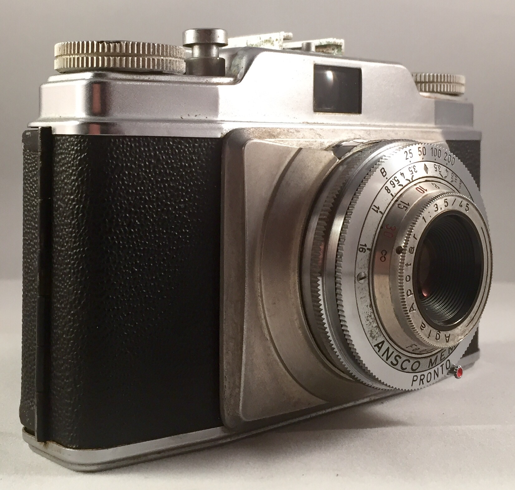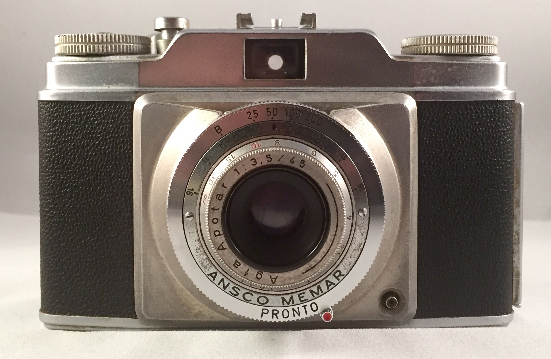 A rebadged Agfa Sillette, the Ansco Memar was sold in the U.S. between 1953 and 1958. With an f3.5 lens and Pronto shutter (up to 1/200), the Memar is a lightweight good all around 35mm shooter.